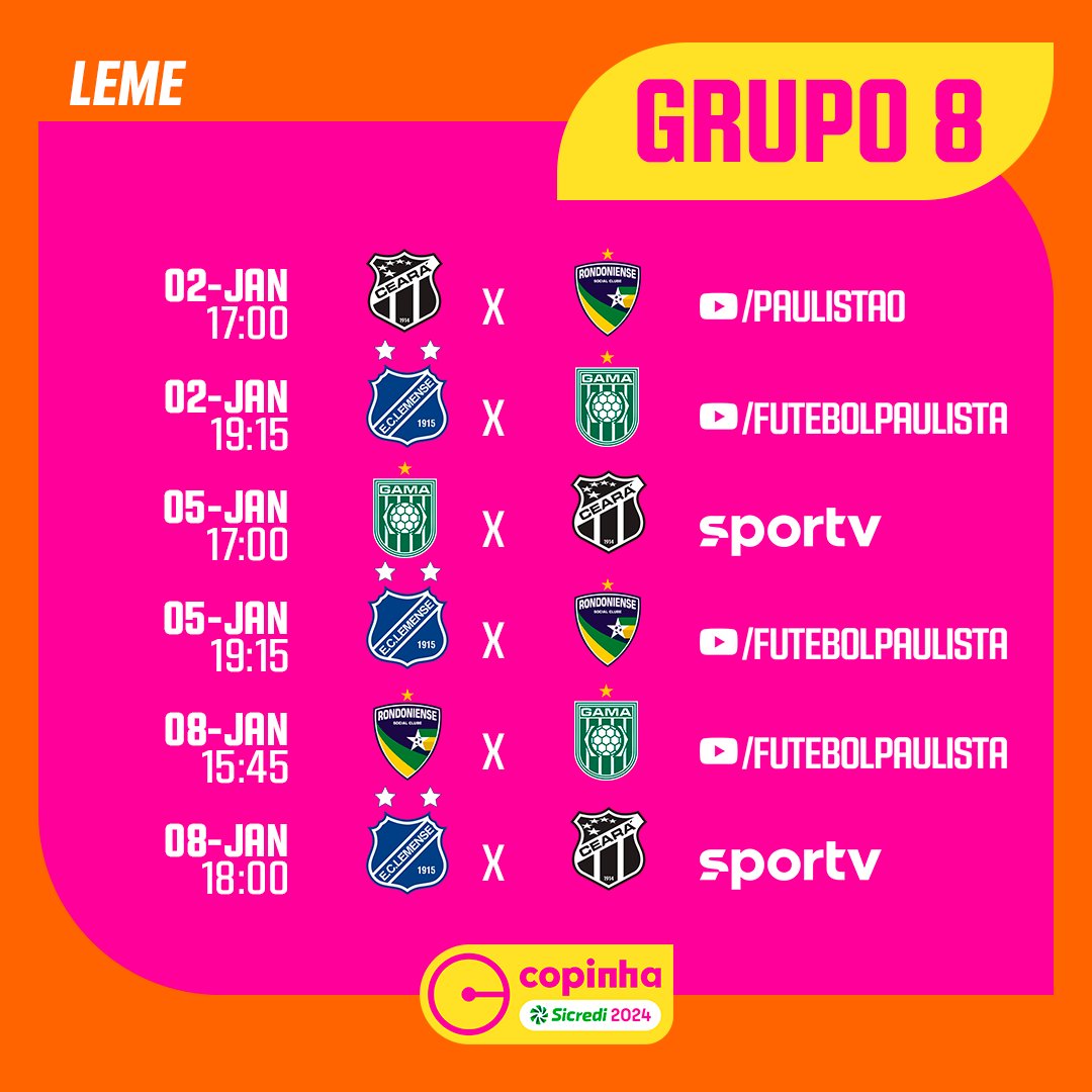 A menos de um mês do início da Copinha 2024, a Federação Paulista de Futebol (FPF), organizadora da disputa, divulgou a tabela detalhada dos meios de transmissão das partidas. O Ceará conheceu onde seus jogos irão ser transmitidos e duas partidas da primeira fase irão passar no Sportv.