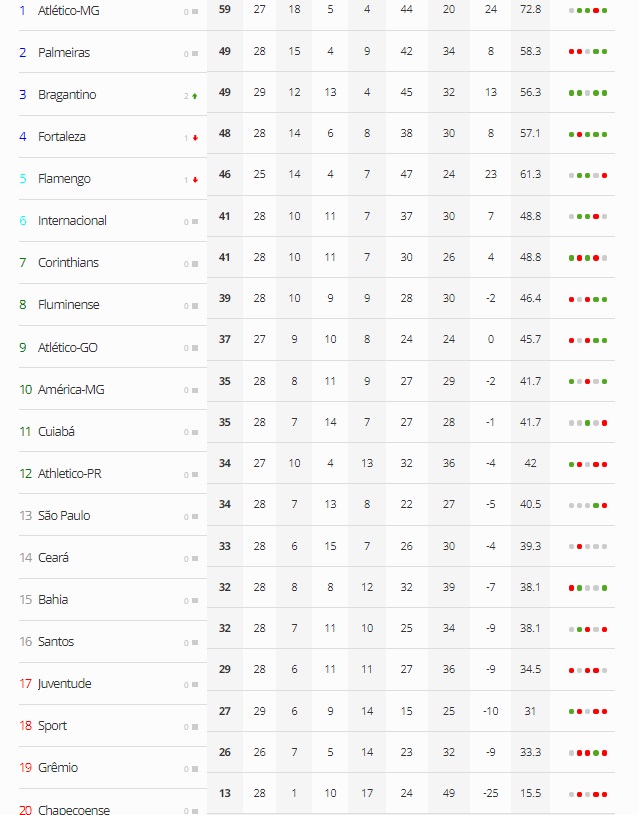 Por outro lado, a tabela também mostra movimentação com os times que estão na luta para sair das últimas colocações na tabela de classificação da Série A do Campeonato Brasileiro. Ainda mais dos times que estão na zona do rebaixamento, ganharam e saíram das últimas posições.