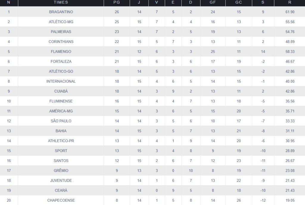 Para conferir, a tabela completa e na íntegra, a reportagem mostra a tabela completa. Principalmente, os times que não estão com boas campanhas atuando longe de seus estádios.
