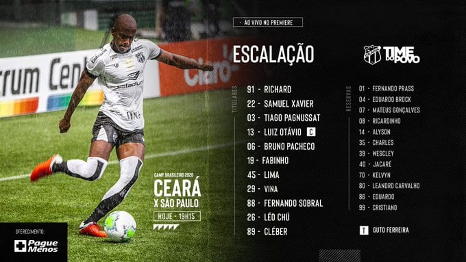 Em instantes a bola rola para para o duelo entre Ceará e São Paulo ela 16º rodada da Série A do Campeonato Brasileiro. A partida começa a partir das 19h15. O vovô está escalado com modificações. O jogo será realizado na Arena Castelão, na capital cearense. O Alvinegro chega pressionado na partida de hoje por conta dos últimos resultados.