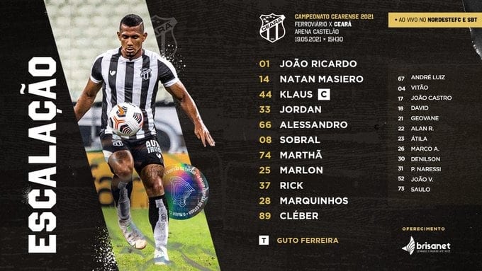 Daqui a pouco, o Ceará enfrenta o Ferroviário, às 15h30 (horário de Brasília), em partida válida pela semifinal do Campeonato Cearense. De acordo com a programação, a partida será realizada na Arena Castelão, em Fortaleza.