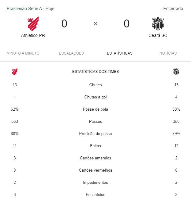 Na noite desta quinta-feira, 8, o Ceará entrou em campo diante do Athletico Paranaense em busca da reabilitação na Série A do Campeonato Brasileiro após três resultados negativos em sequência. Mesmo com várias oportunidades, o Alvinegro não converteu em gol e saiu de campo com o empate em 0 a 0 diante do Furacão.
