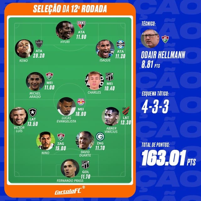 [/vc_column_text]O empate do Ceará com o Goiás na 12ª rodada não foi um bom resultado para o Vozão na Série A do Brasileirão. Entretanto, dois jogadores do time cearense forma destaque na seleção do Cartola FC.