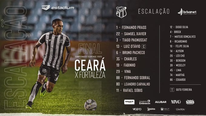 Em instantes a bola rola para para o Clássico-Rei entre Ceará e Fortaleza pelo jogo de ida das finais do Campeonato Cearense 2020. A partida acontece nesta quarta-feira, 30, a partir das 21 horas. O vovô está escalado com os titulares.